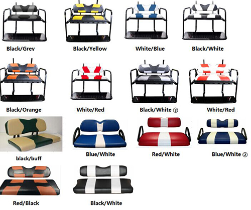 Club car DS rear flip seat kit This Club Car DS Flip Rear Seat Kit gives you the option to use your cart as a 4-seater or as a utility cart. Kit has durable powder coated steel construction and includes stainless steel hardware and instructions. Pure color:WHITE, BUFF,BLACK,STONE,TAN,IVORY Part # IC-10520