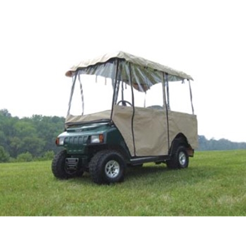 Deluxe 4-Sided Universal 4 Passenger Rain Enclosure (Carts w/ 80" Tops, With or Without Windshield). Installs in minutes. Features easily adjusted panels, weather protected fabric, and clear PVC windows. Color = Sand